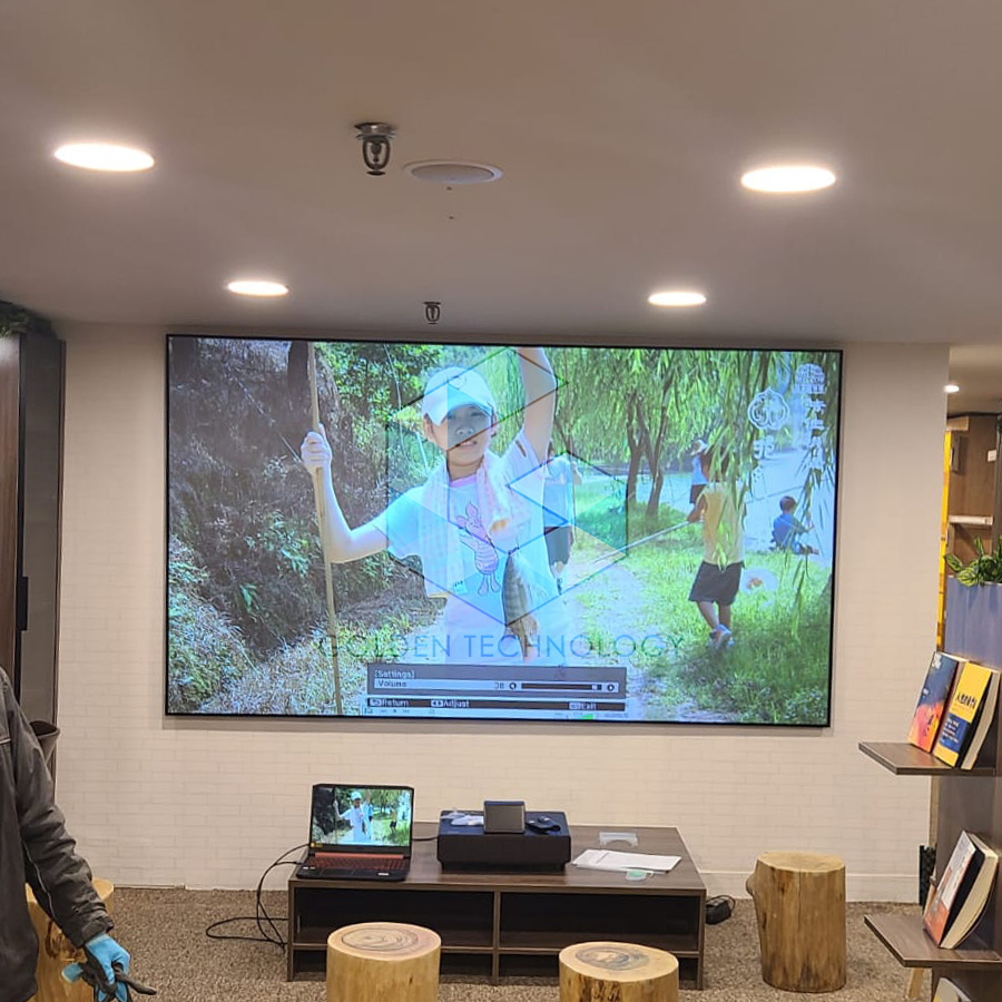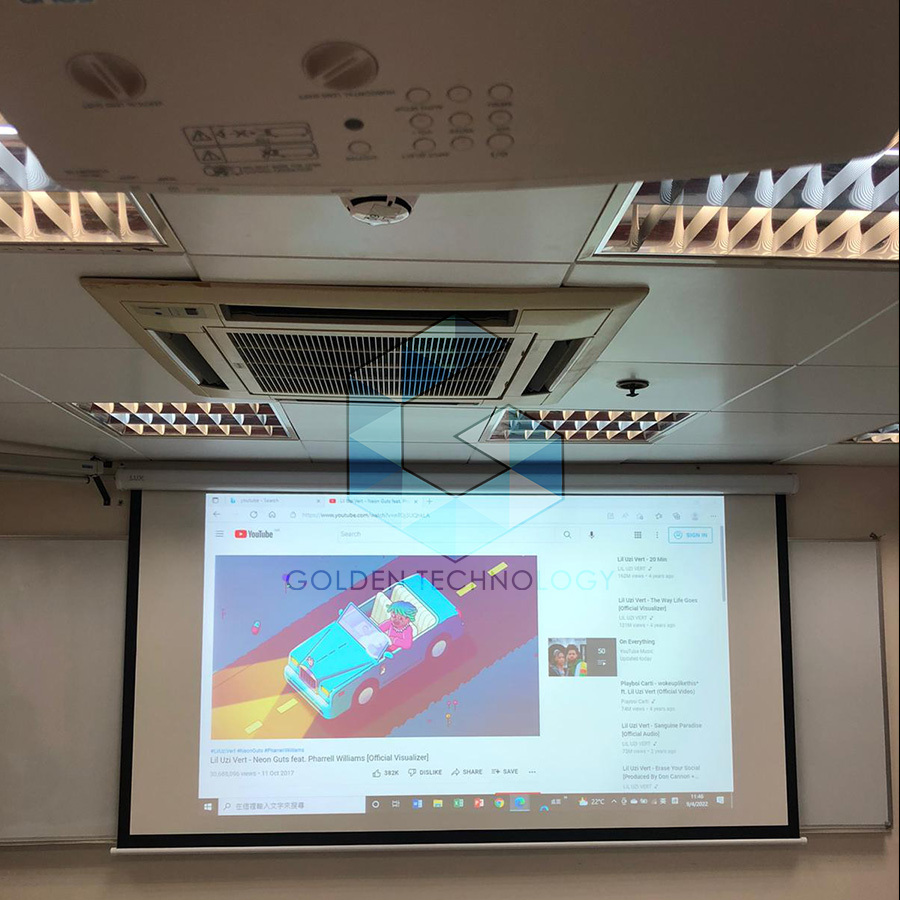 屏幕安裝:Potech 100’’ 16:9 白玻璃纖維 電動投影幕