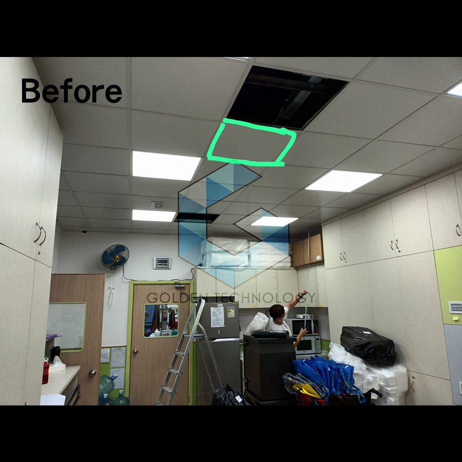 1.更換投影機,並於已加固假天花上裝新吊架和投影機