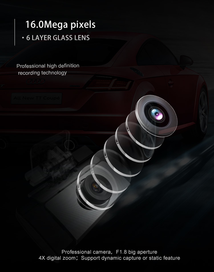 – 前後鏡頭雙錄,前鏡2880*2160@24fps/ 1440p@30fps/ 1080@60fps ,後鏡頭 AHD 720P