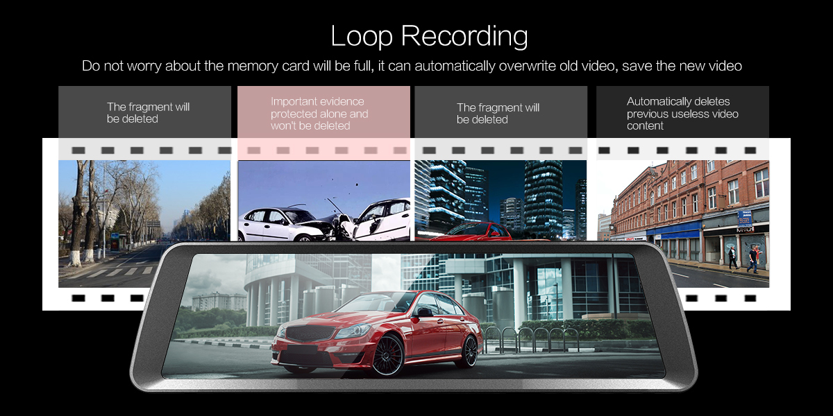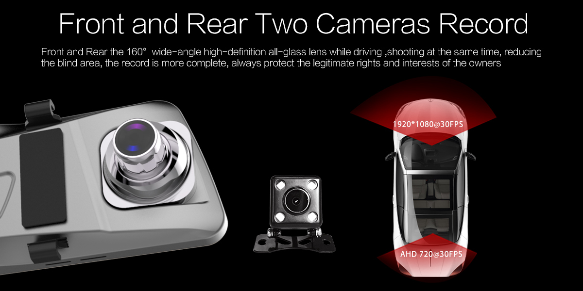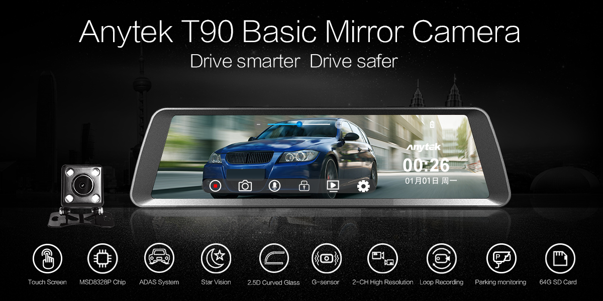 Anytek T90 10吋輕觸式雙鏡頭倒後鏡行車記錄儀