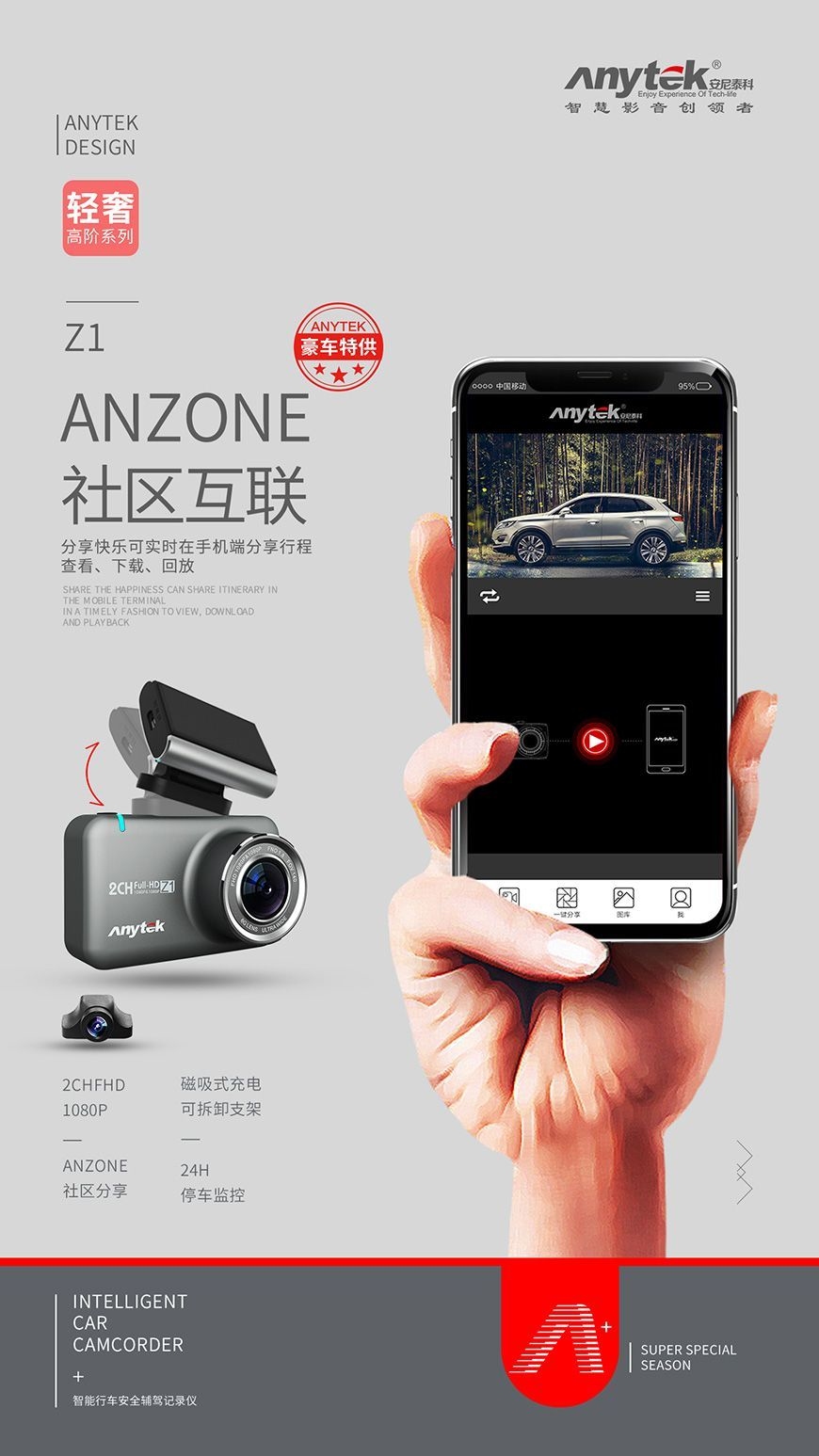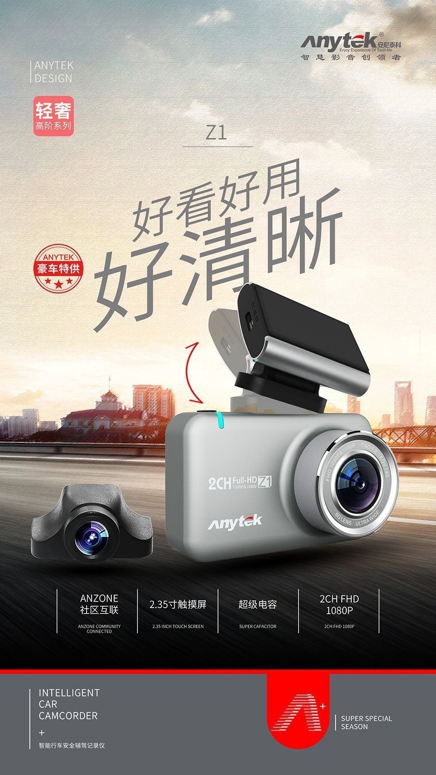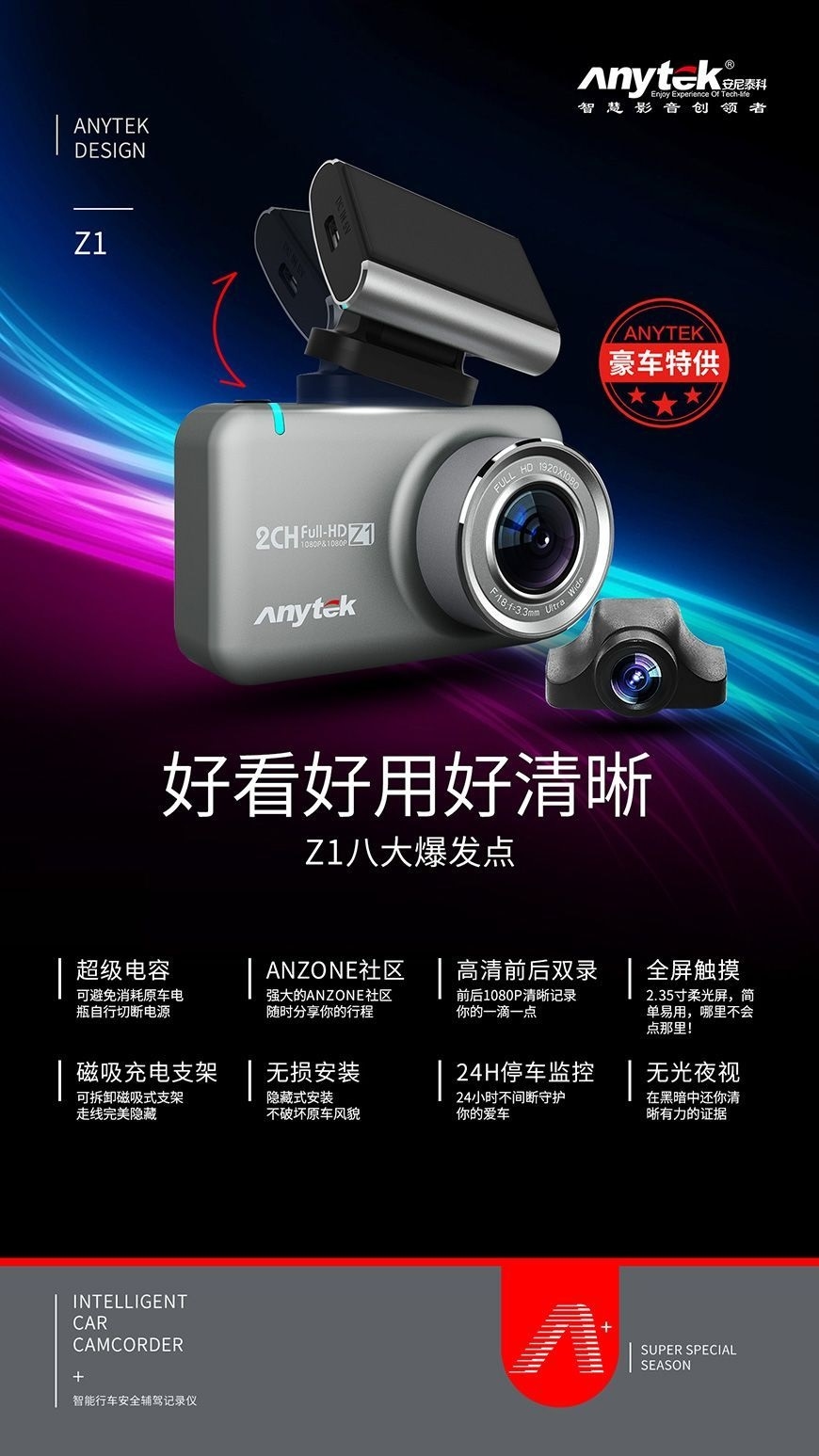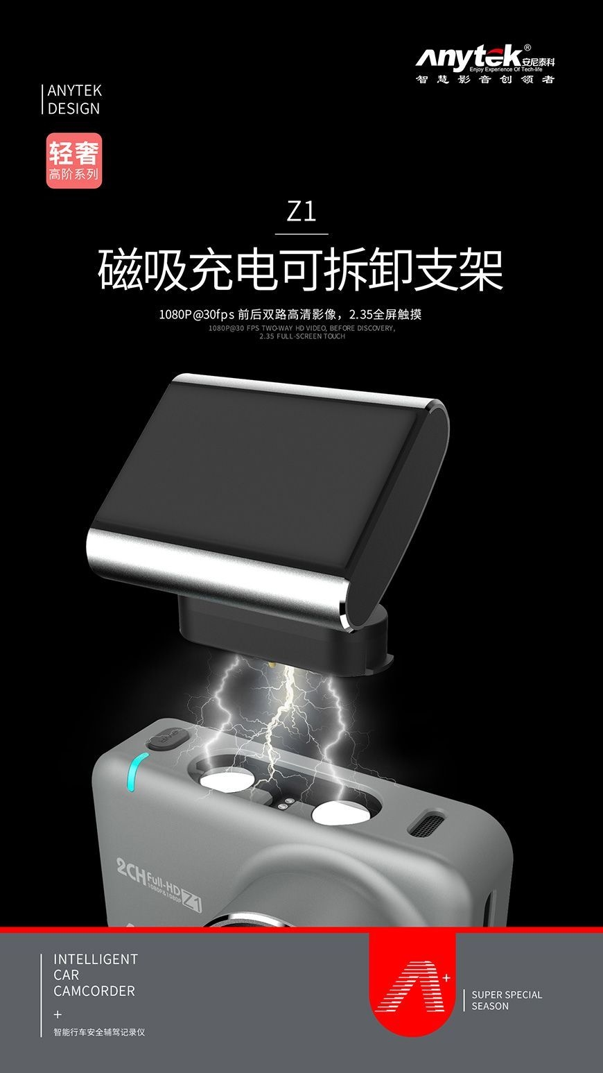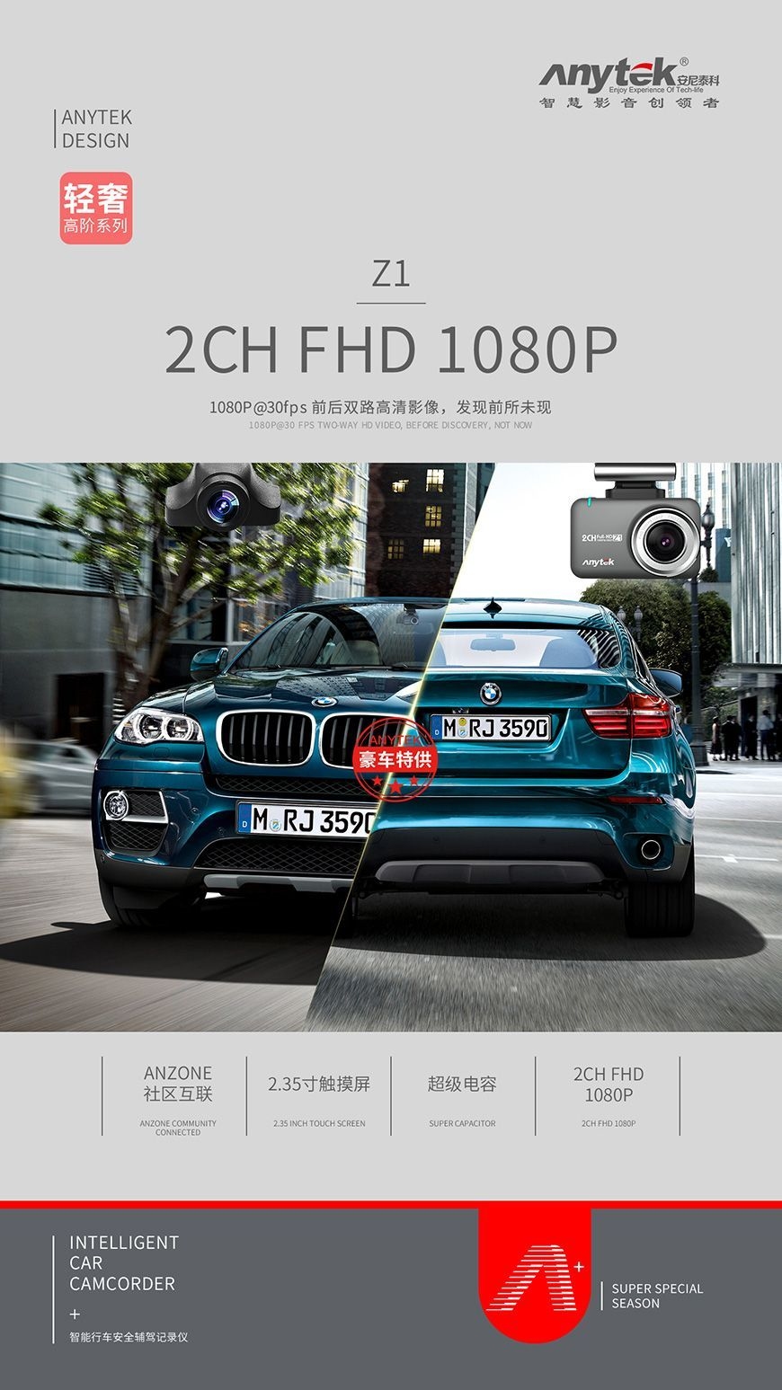 Anytek Z1 WIFI前後1080P雙鏡頭行車記錄儀