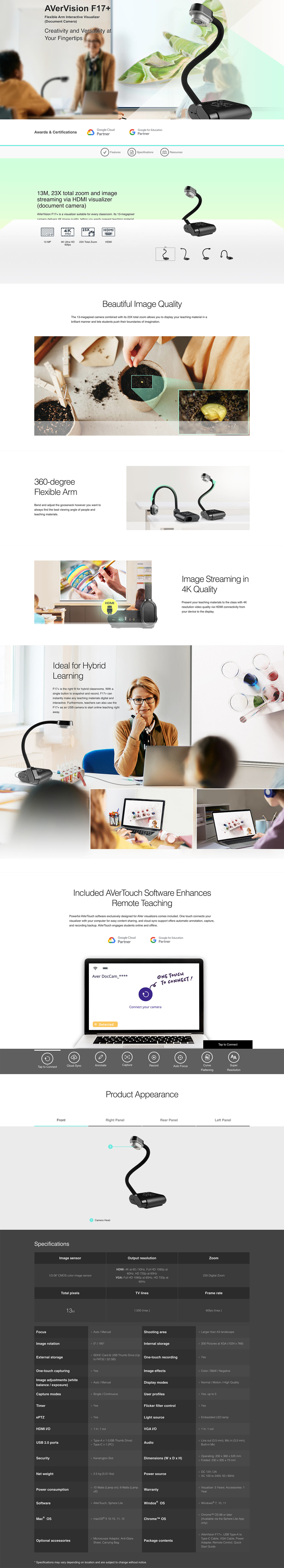 AVer AVerVision F17+ Flexible Arm Interactive Visualizer (Document Camera)