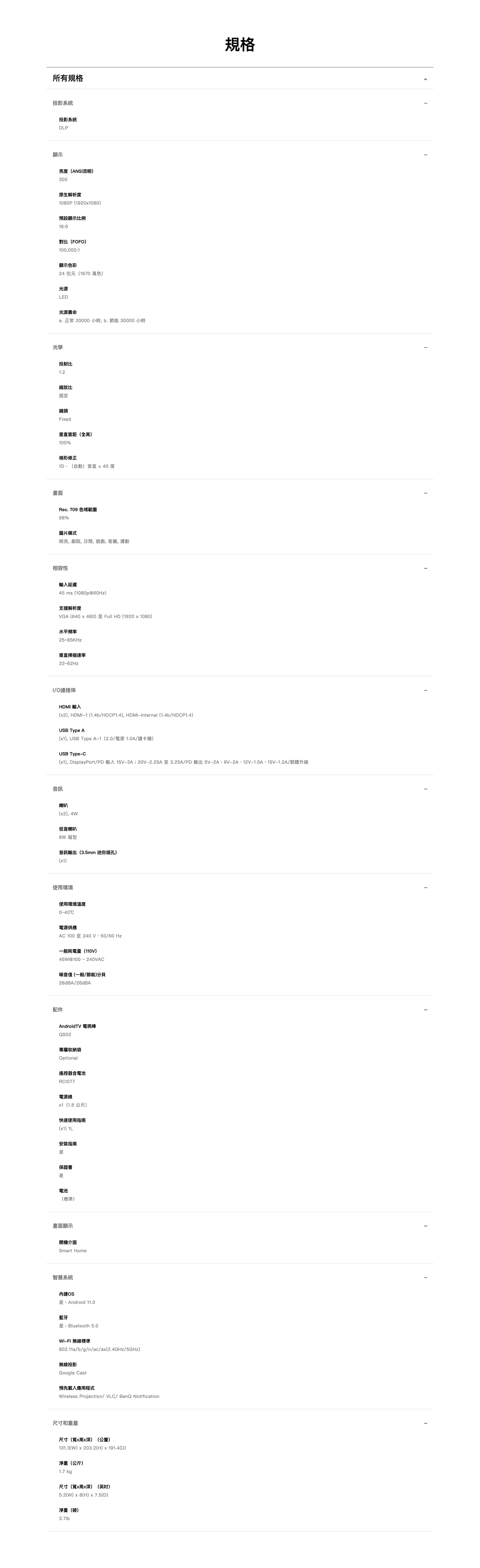 - 135° 多角度、可直接投影天花板;自動對焦 / 自動垂直梯形修正