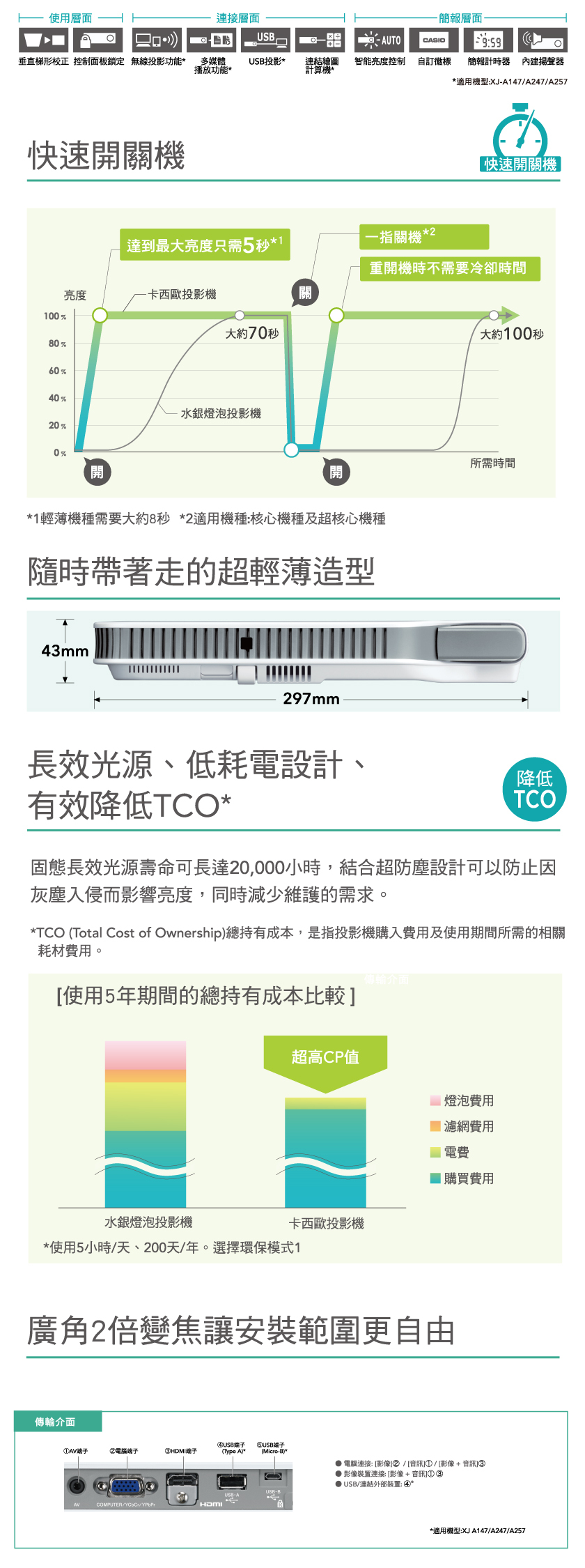 | USB 功能 | USB 2.0 Micro-B x 1 ( 投影機後面 ) USB 1.1 Micro-B x 1 ( 投影機側面 ) |