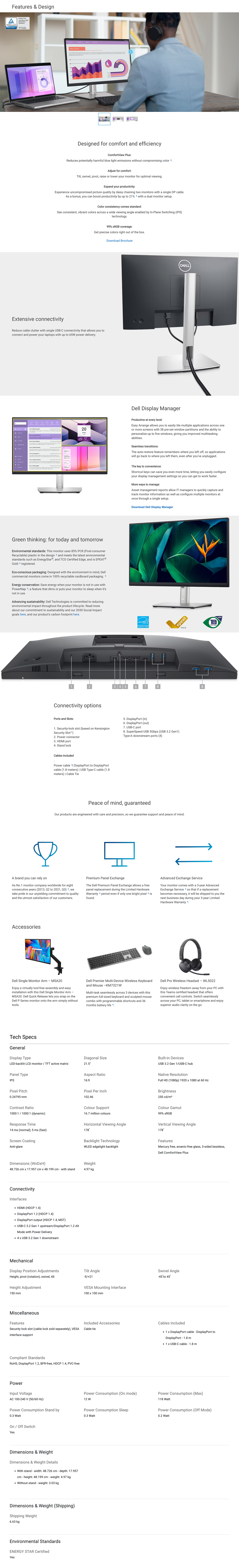 Maximize productivity on our 21.5-inch FHD monitor with a three-sided ultrathin bezel, powerful connectivity, ComfortView Plus and an eco-friendly design.