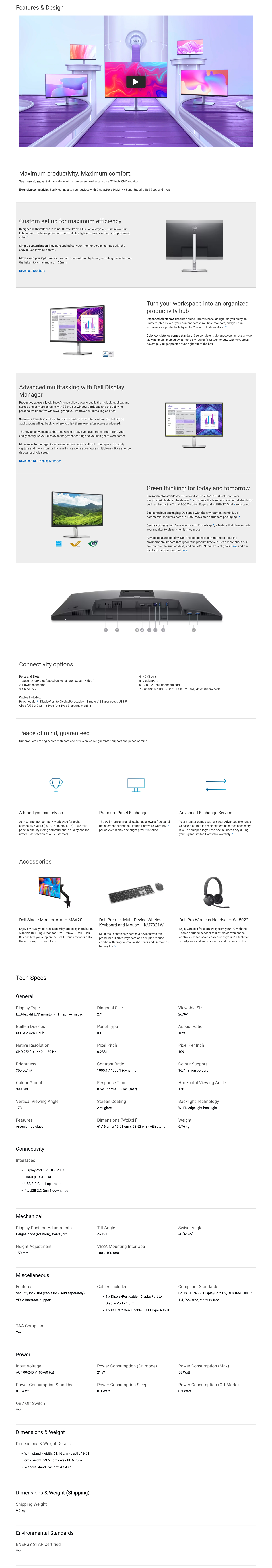 Stay focused on a 27-inch QHD monitor optimized to deliver high performance details and clarity.