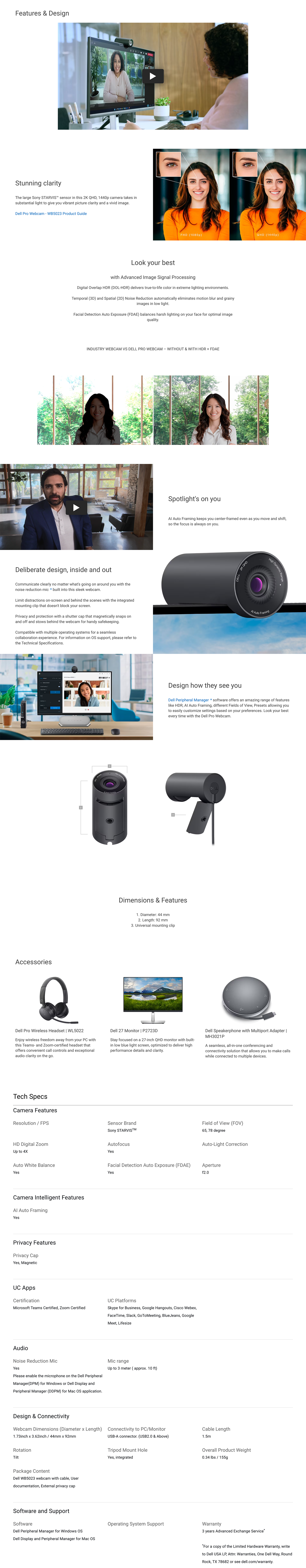 Professional 2K QHD webcam with outstanding video quality and picture clarity, certified for Microsoft Teams and Zoom.