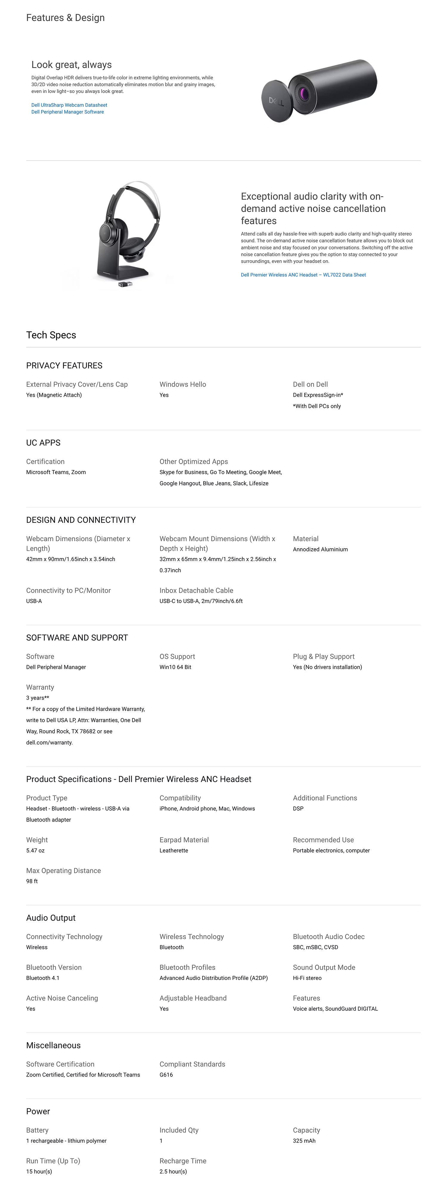 Collaborate with ease from anywhere with the best-in-class image quality 4K webcam and the Teams certified wireless headset with active noise cancellation and smart sensors to automatically mute/unmute your call.