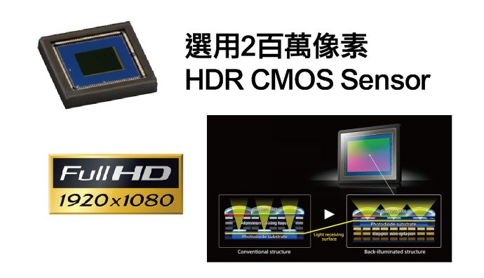採用2百萬超高像素 HDR CMOS 影像感測器
