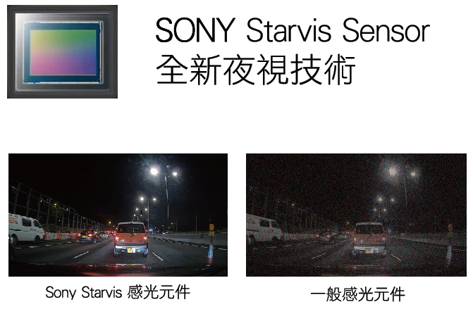 感光元件龍頭 Sony 為監控鏡頭設計了超高感光的 Starvis 影像感測器,擅長於極低光源下的拍攝。HP行車記錄器將 Sony Starvis 頂尖效能完全釋放!可使日夜畫面更明亮清晰、細節更精緻、超低光源下雜訊降低,呈現最優美的自然的畫面。