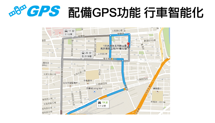 可以外置GPS接駁器,行車座標及路徑完全記錄,智慧顯示當前的行車速度、方向及目前的時間,並設有固定測速點照相警示功能,保障行車的安全。