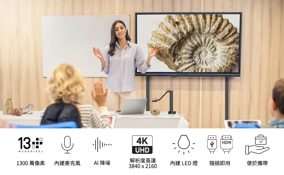 • HDMI 無線投影:隨附 4K 無線顯示器,無需電腦即可投影