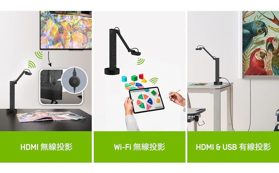 • 支援無線 Wi-Fi、HDMI、USB 三種連接方式