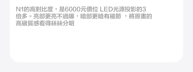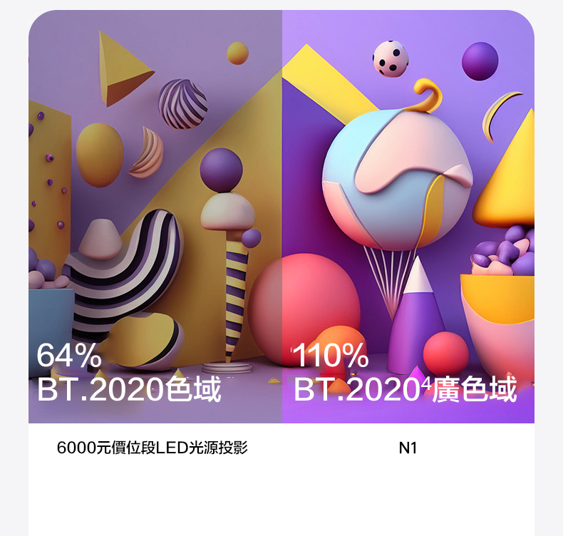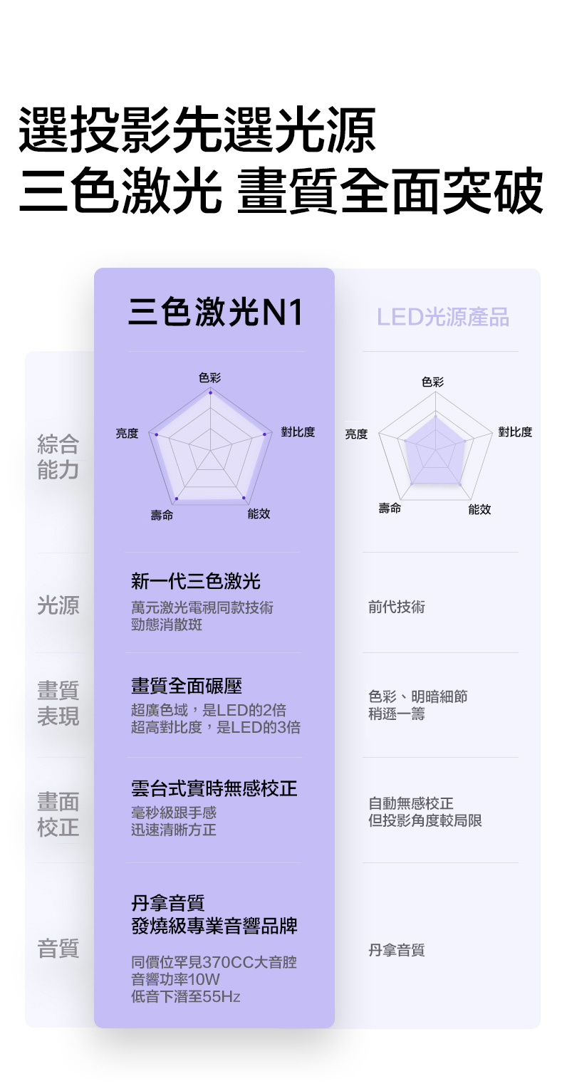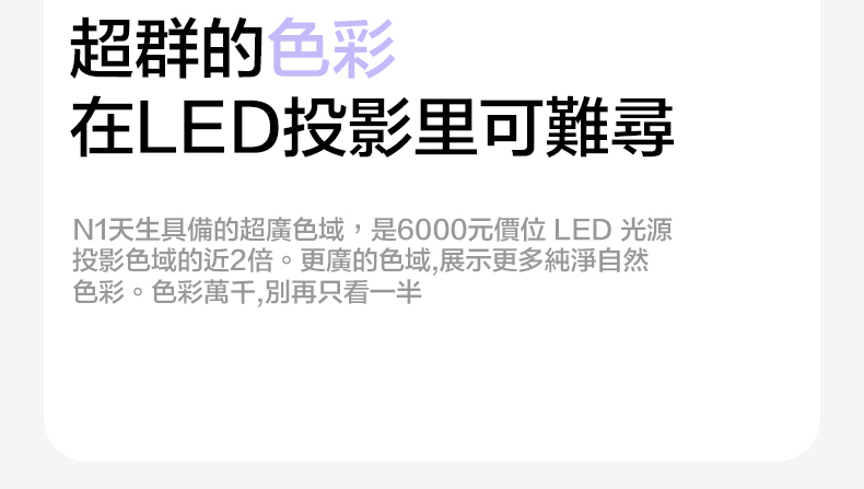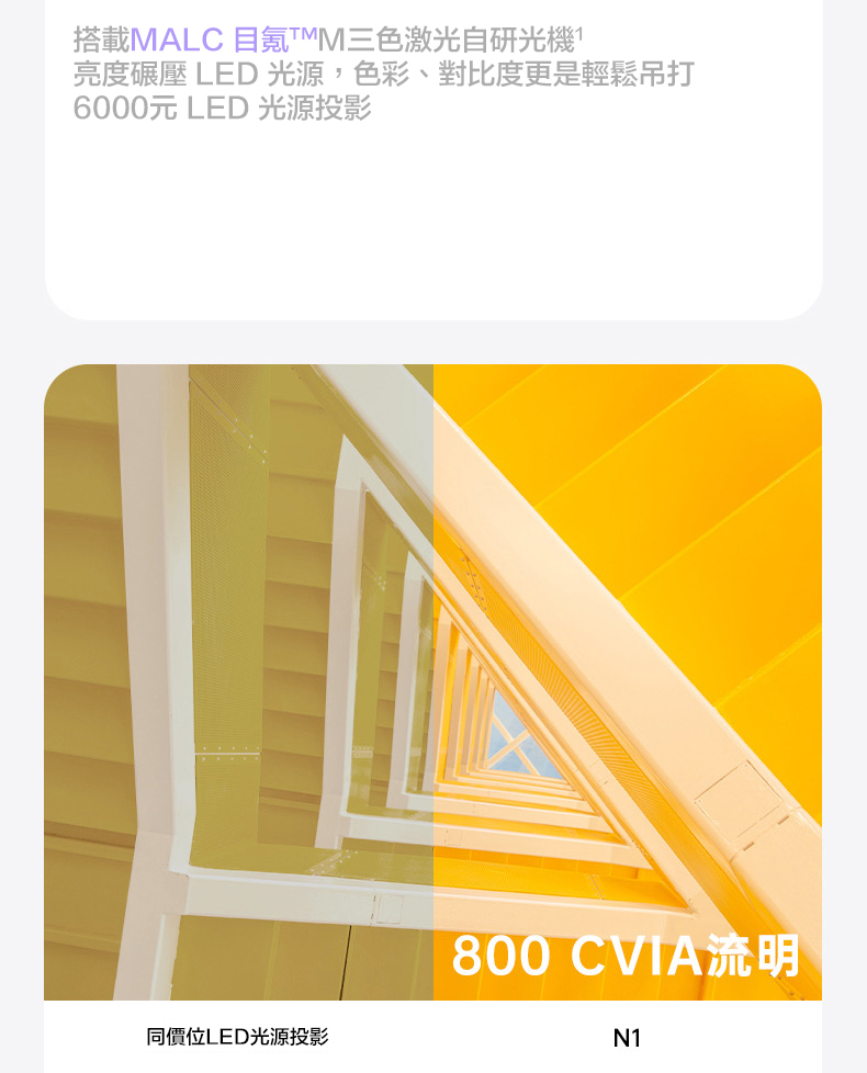 - 1080p 激光高清 |110% BT。 2020 |△E<1 色彩準確度 | HDR10 | 3.1600:1 對比度