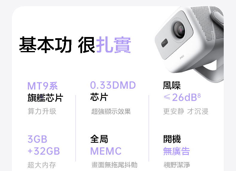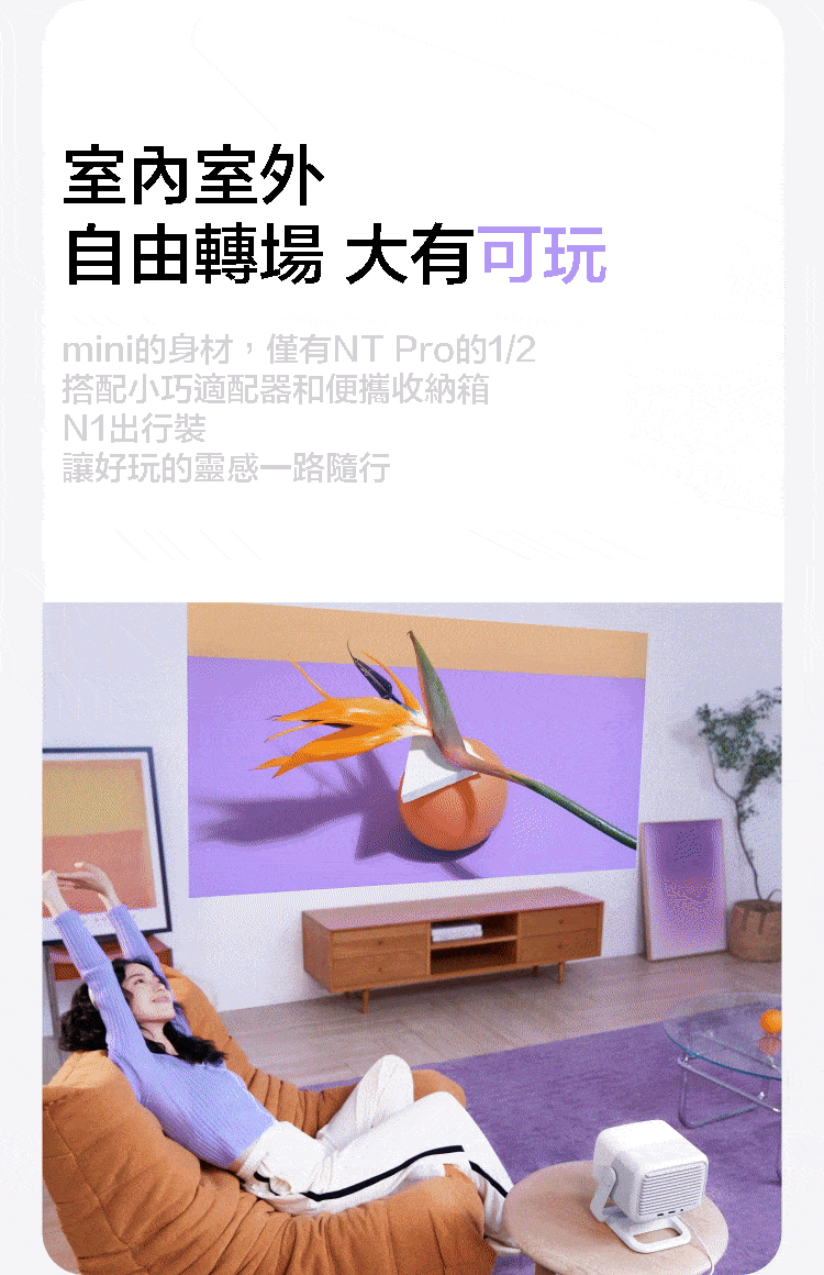 - 集成雲台投影儀| 127° 垂直調整 | 360°水平調整