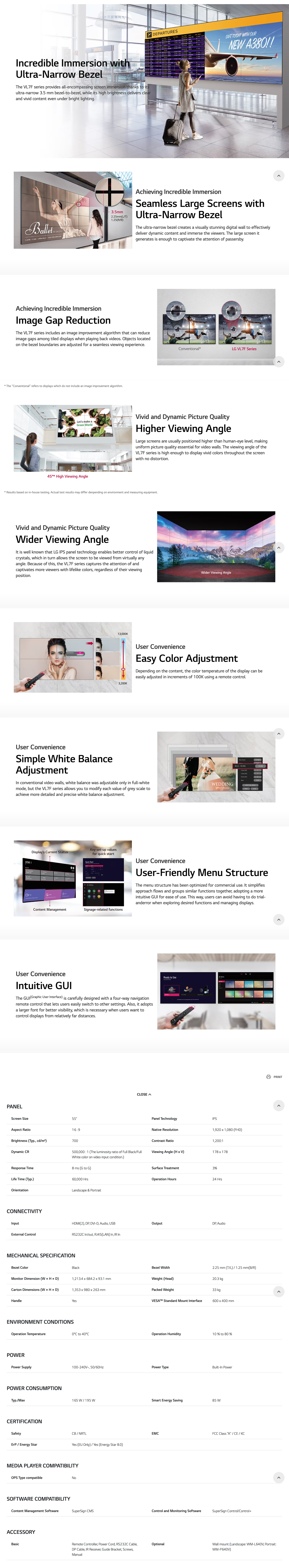 - Interface : HDMI (2)/ DP/ DVI-D/ USB/ RS232C/ RJ45/ Audio/ IR