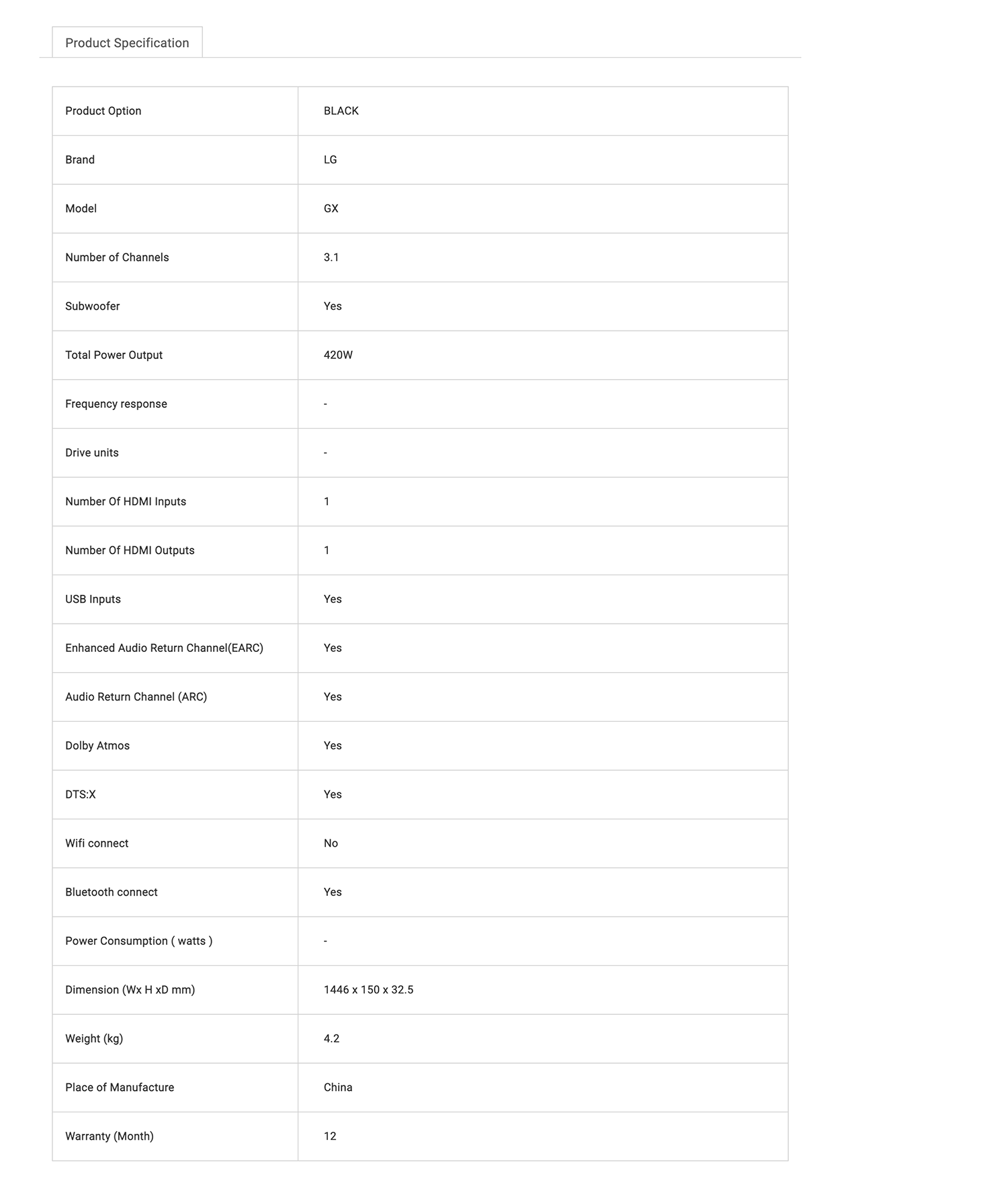 融入嶄新音訊技術及大師級藝術設計,LG Sound Bar GX 大大提升觀感與聽覺體驗。支援 Dolby Vision™ 、Dolby Atmos® 及 DTS:X ,將家居變為影院,讓用家置身喜歡的電影世界中。高解析度音訊傳遞 96kHz 和 24bit 的音效取樣,帶來更準確的聲音和更愉悅的聆聽體驗。