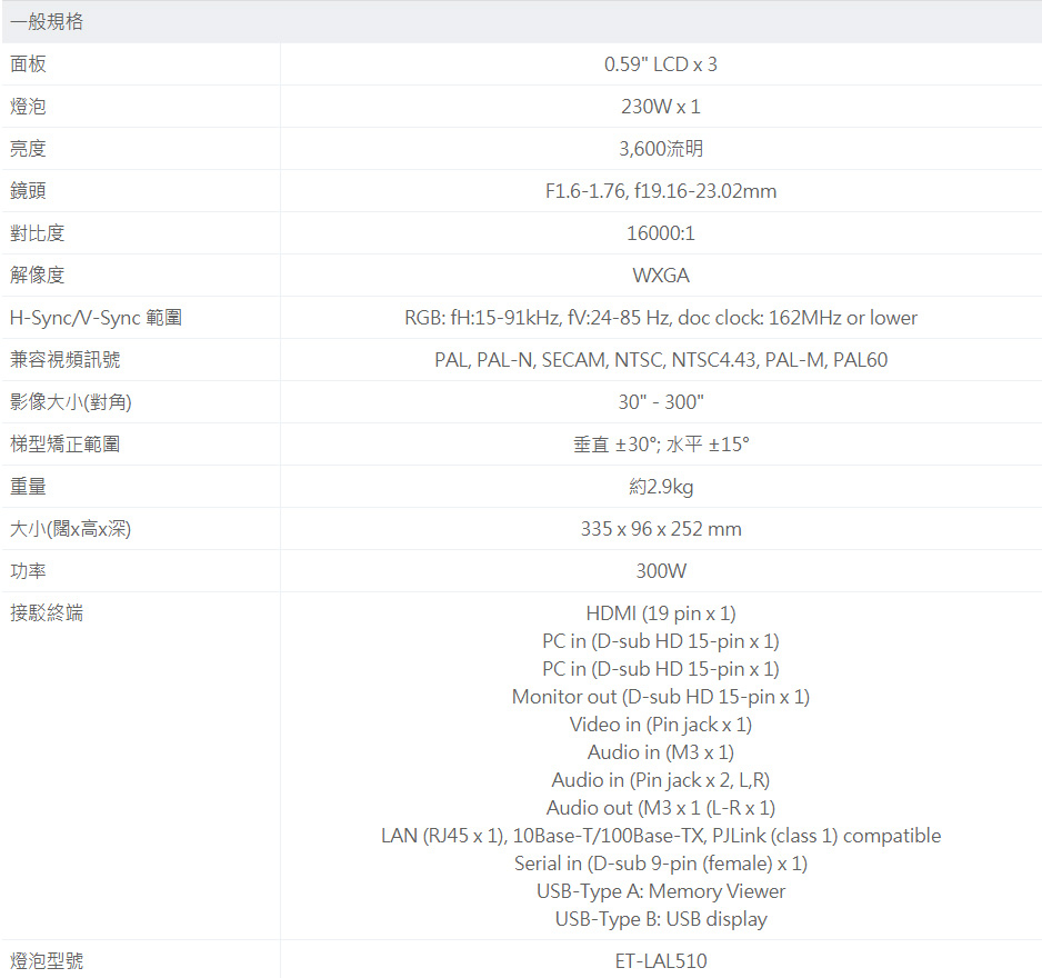 PT-LW375 LCD投影機