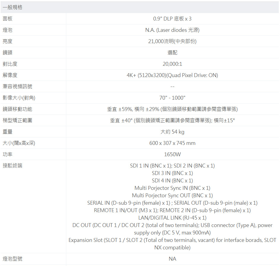 PT-RQ22K專業用Solid Shine 3-DLP 投影機