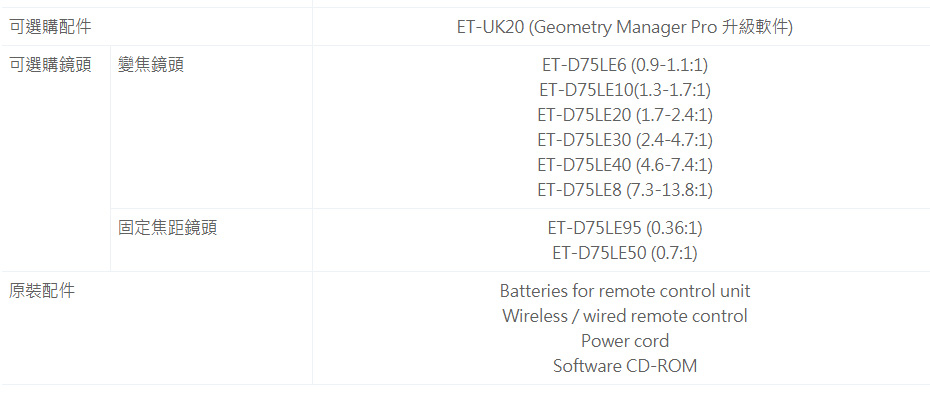 • 內置幾何調整功能,可投射畫面至弧型表面而不會失真,更可選配升級套件ET-UK20,提高幾何調整功能