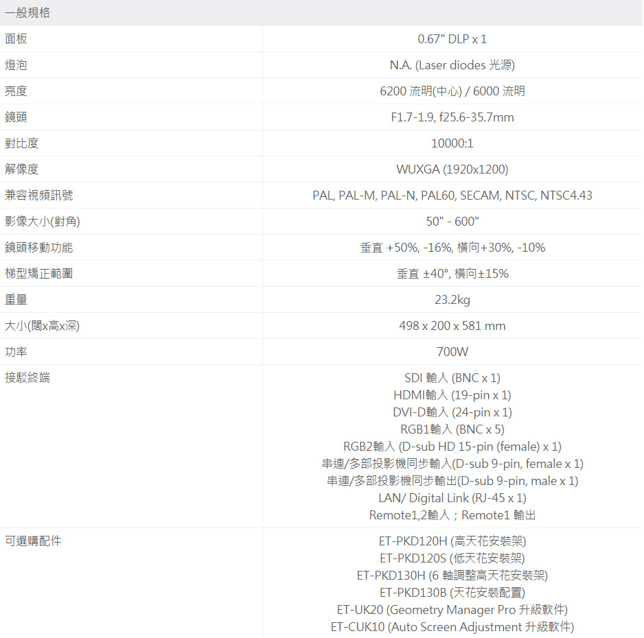 PT-RZ660裝置式Solid Shine DLP 投影機