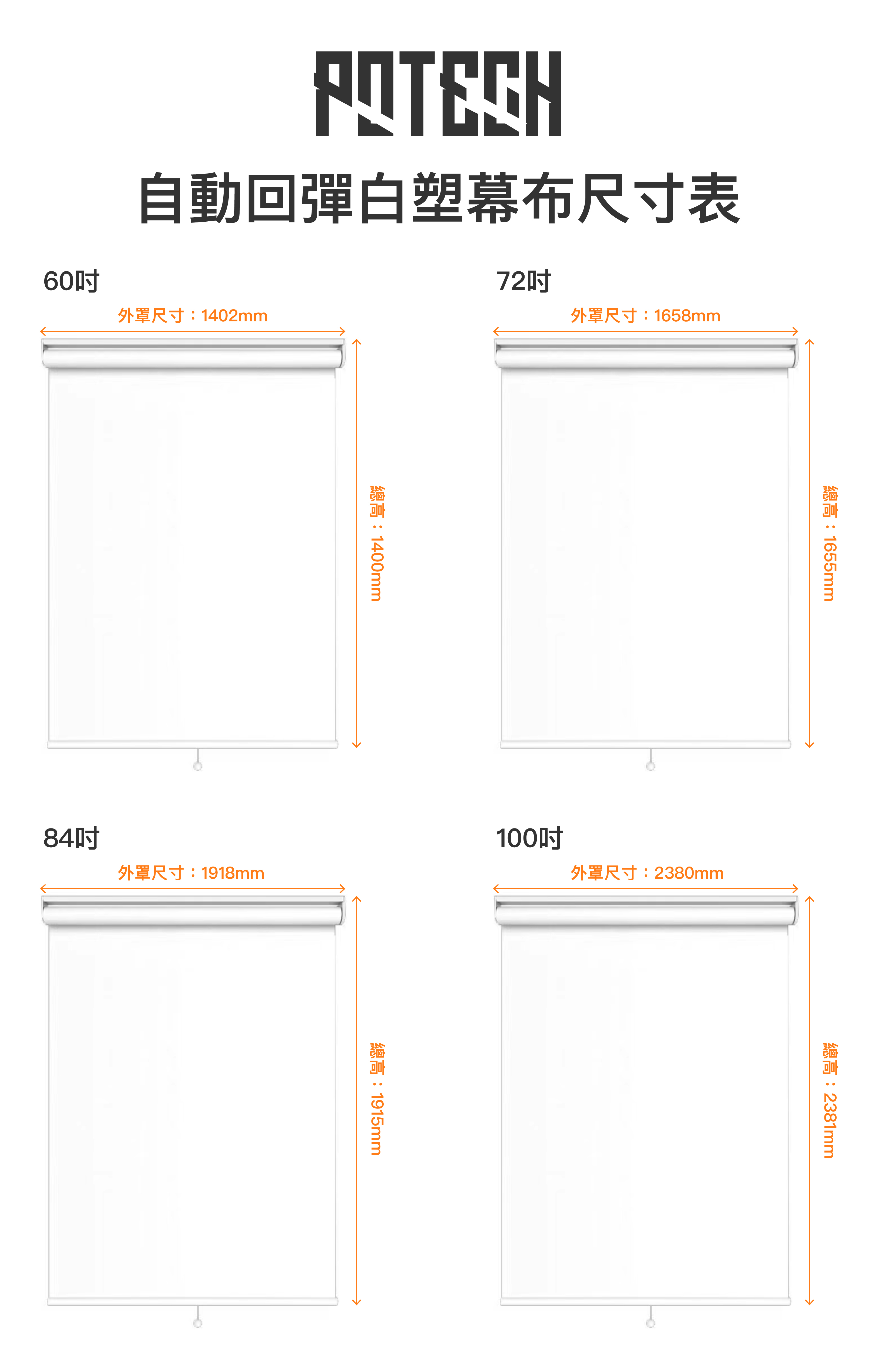 POTECH 自動回彈白塑幕布 (吊頂/掛牆)