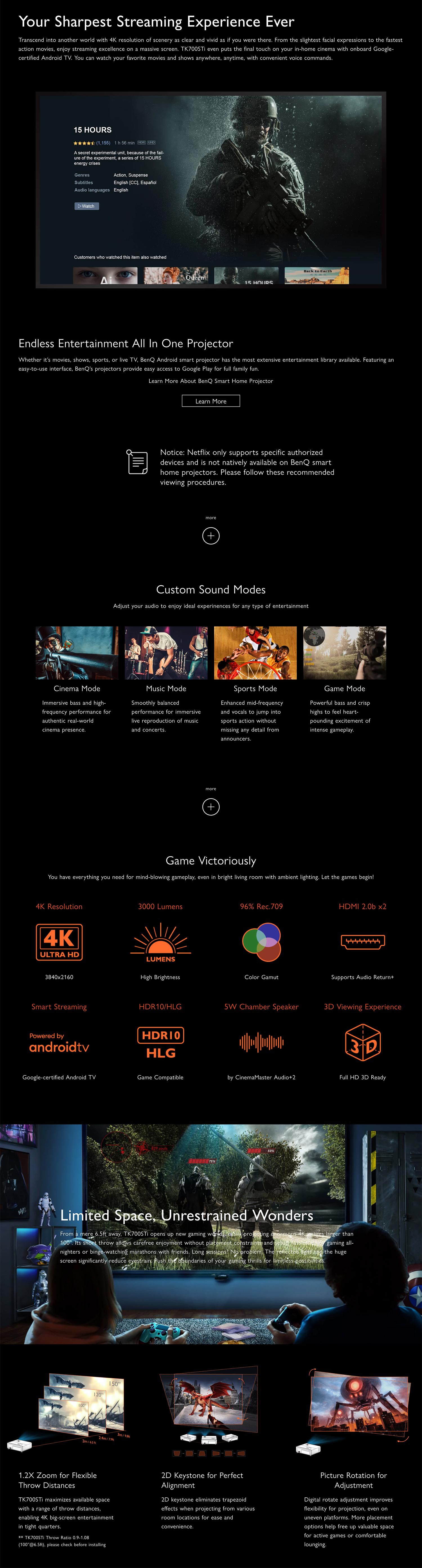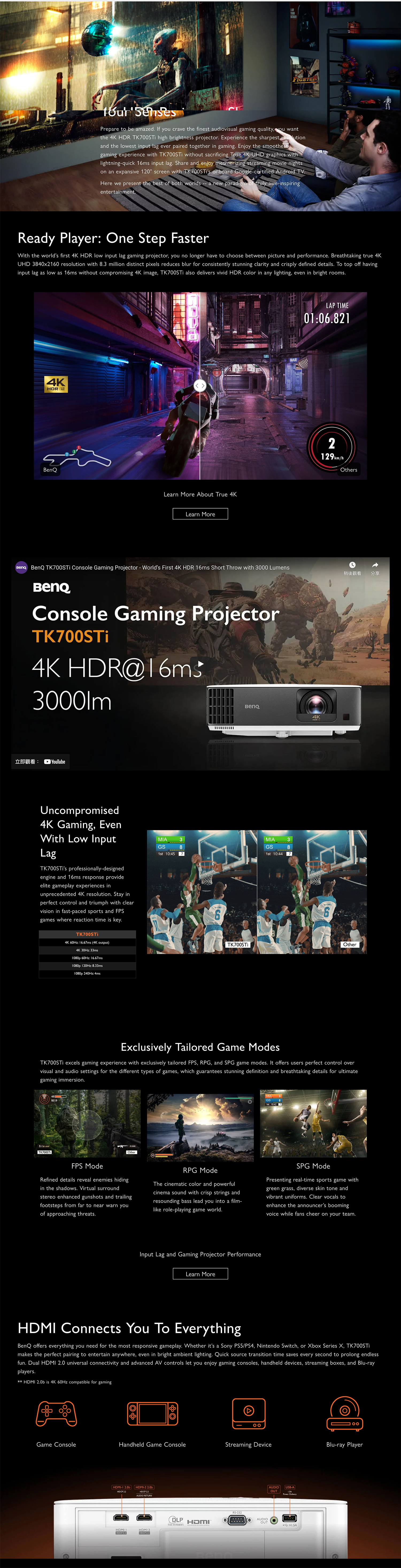 - High Brightness 3000lm, 96% Rec.709, HDR Game Compatibility