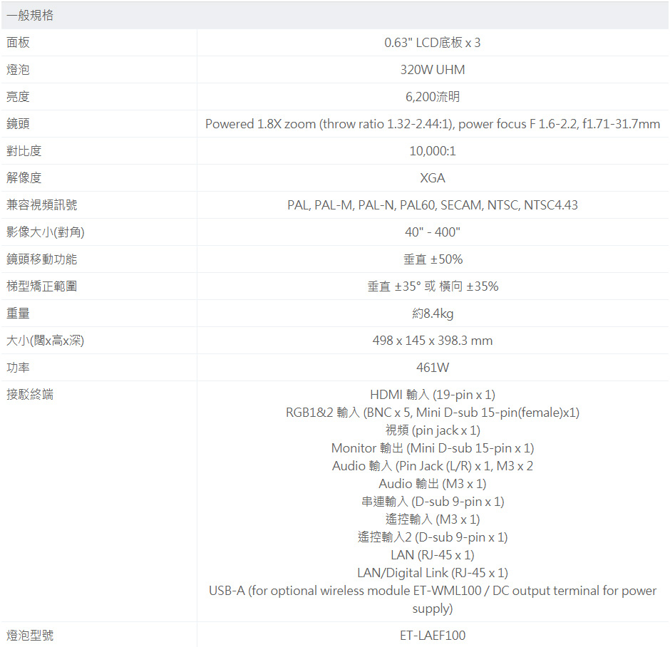 PT-EX620裝置式LCD投影機