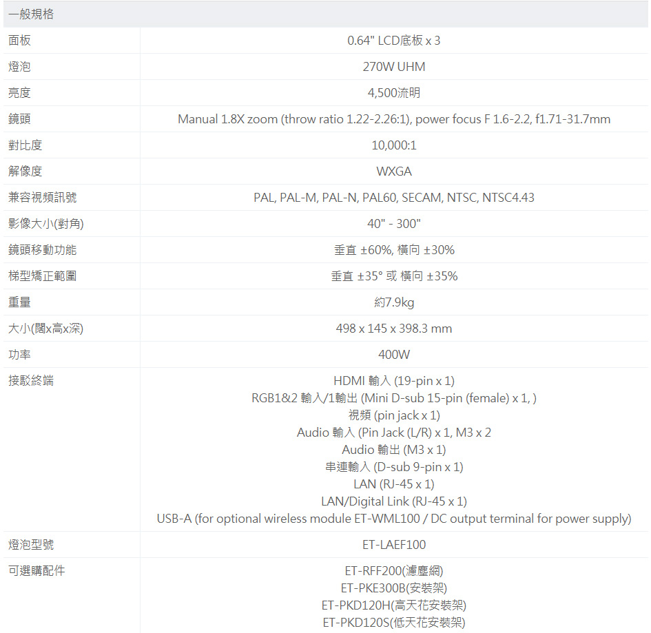 PT-FW530裝置式LCD投影機