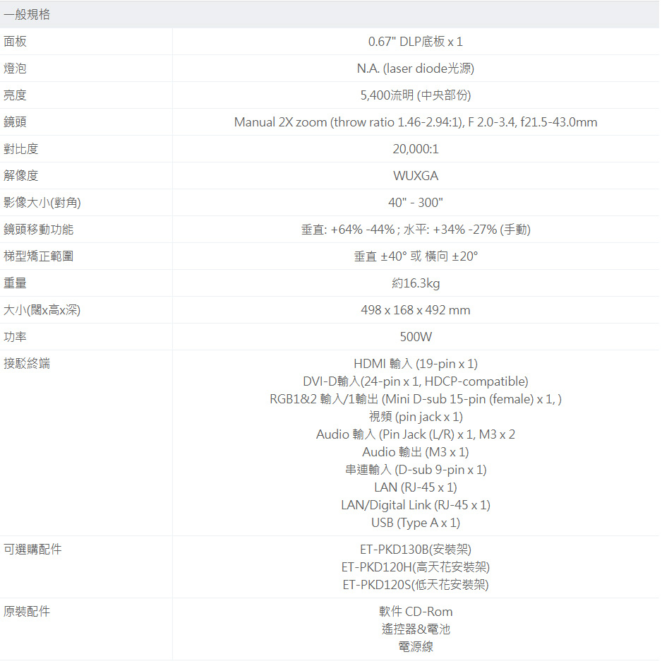 PT-RZ570 裝置式Solid Shine DLP 投影機