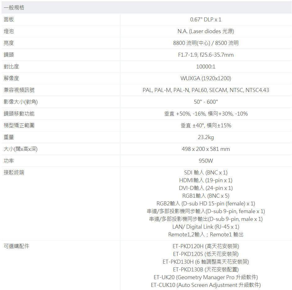 PT-RZ870裝置式Solid Shine DLP 投影機