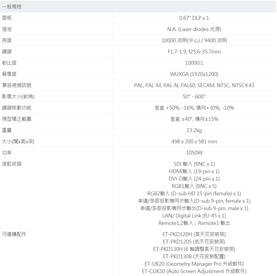 PT-RZ970裝置式Solid Shine DLP 投影機