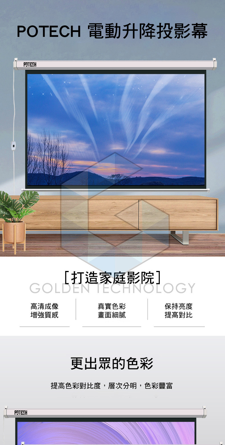 經典系列電動銀幕全部採用專利技術的靜音動力電機,運行寧靜流暢;結構部品均採用先進工藝製造完成;經典系列銀幕採用堅實的八角型合金外殼,典雅氣派,適合任何裝飾環境;採用大口徑轉管,內軸承墜極強,保證大跨度寬大屏幕平整如鏡。獨特的玻珠或白塑幕布,亮度高增益大,令畫面更加清晰艷麗。