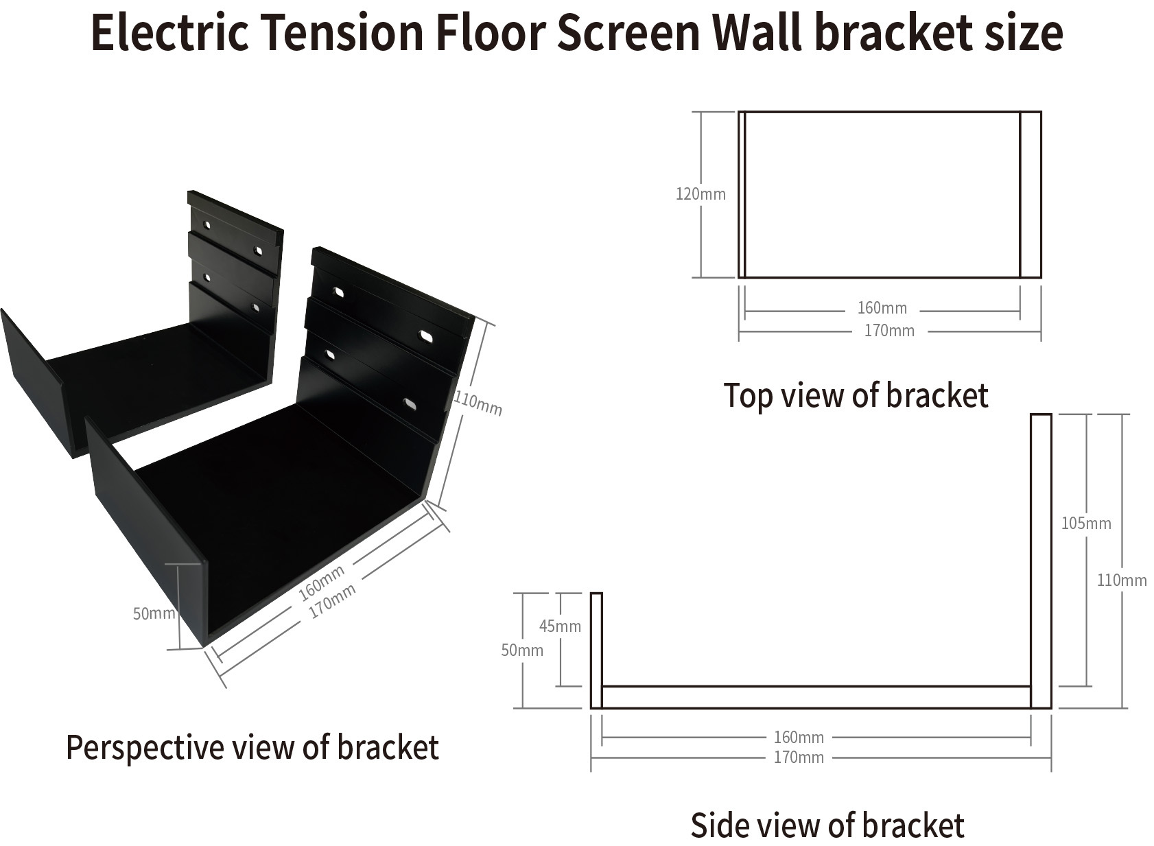 上掛架考慮到不能放在地上的地方,屏幕不一定能滿足。我們提供了一個額外的堅固的鋁合金牆上掛架,可以購買用於簡單的牆壁安裝。