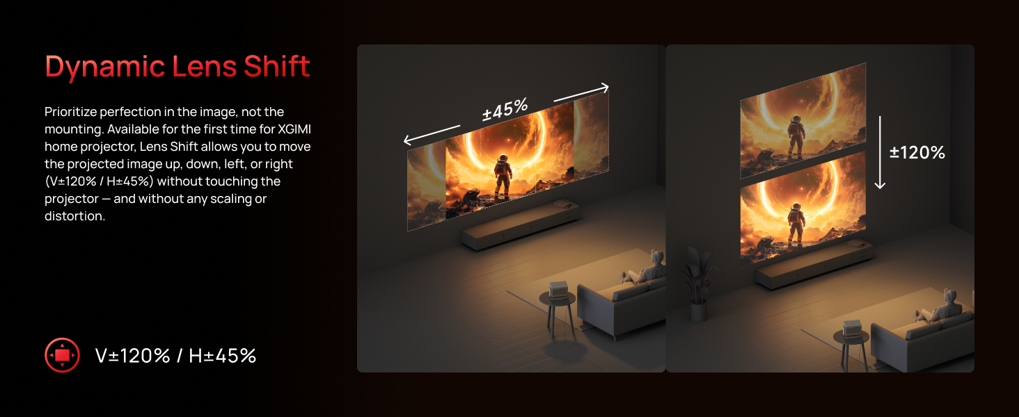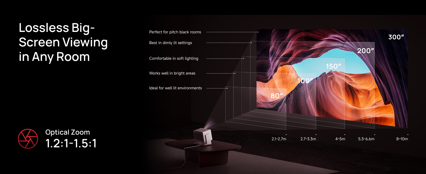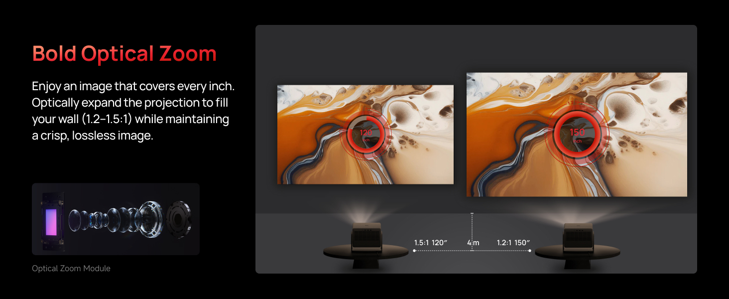 無損光學:靈活的鏡頭移位和光學變焦可讓您在設定時更加自由 - 不犧牲清晰度。 從任何角度享受任何尺寸的清晰、無失真視覺效果。 ​