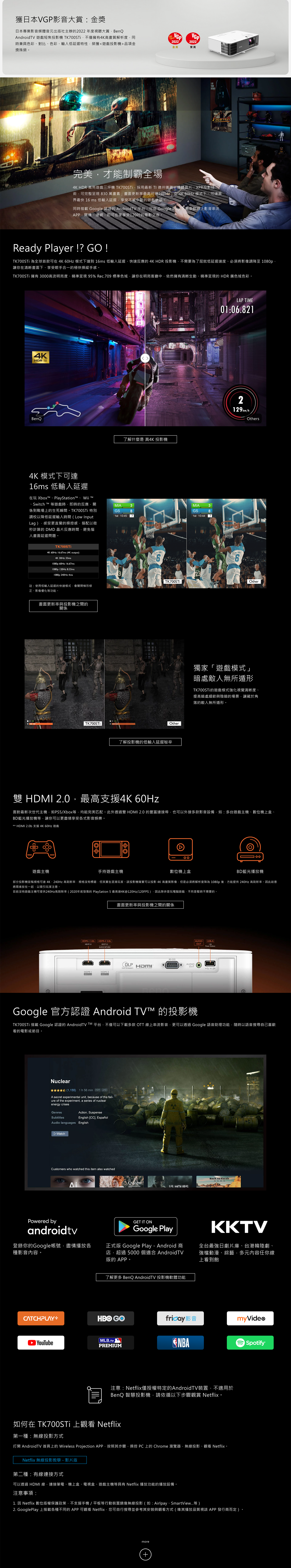 BenQ TK700STi 4K HDR 低延遲 高亮遊戲三坪機