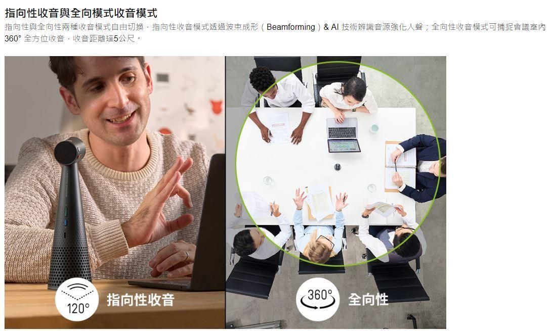 • 指向與全向收音一秒切換,多人會議展現高效率