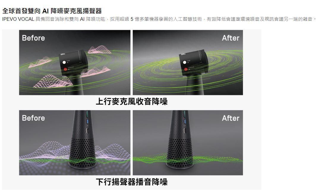 • 全球首款 AI雙向降噪麥克風揚聲器