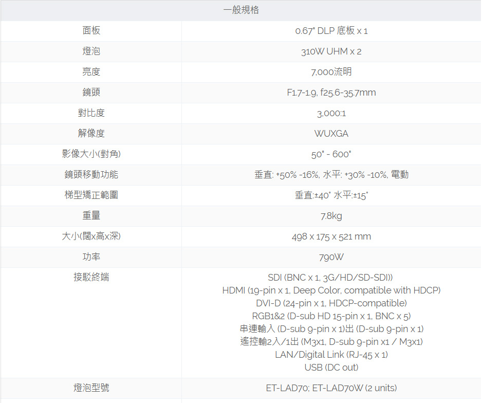 In another exclusive for this class ofprojector, the DZ780 series is now compatible with Art-Net DMX, a protocol forlighting management. It also features DIGITAL LINK, allowing long distancetransmission of up to 1080p content using a single cable connection of up to150m (100m for WUXGA resolution).