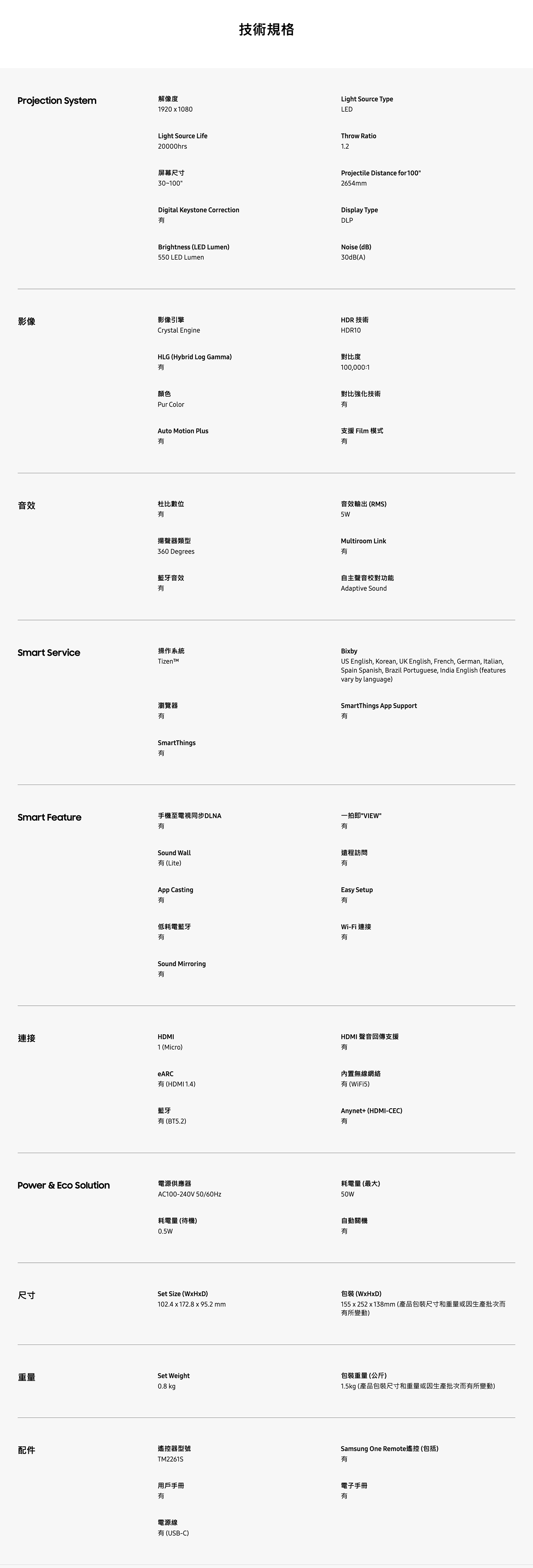 180 ° 投影角度,隨時享受大屏幕觀賞體驗 自動梯形修正、自動對焦、自動水平調功能 Smart TV 體驗並獲 OTT 串流媒體夥伴認證
