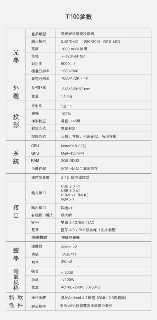 XGIMI 極米 T100徕坦高清無線微型智能投影機