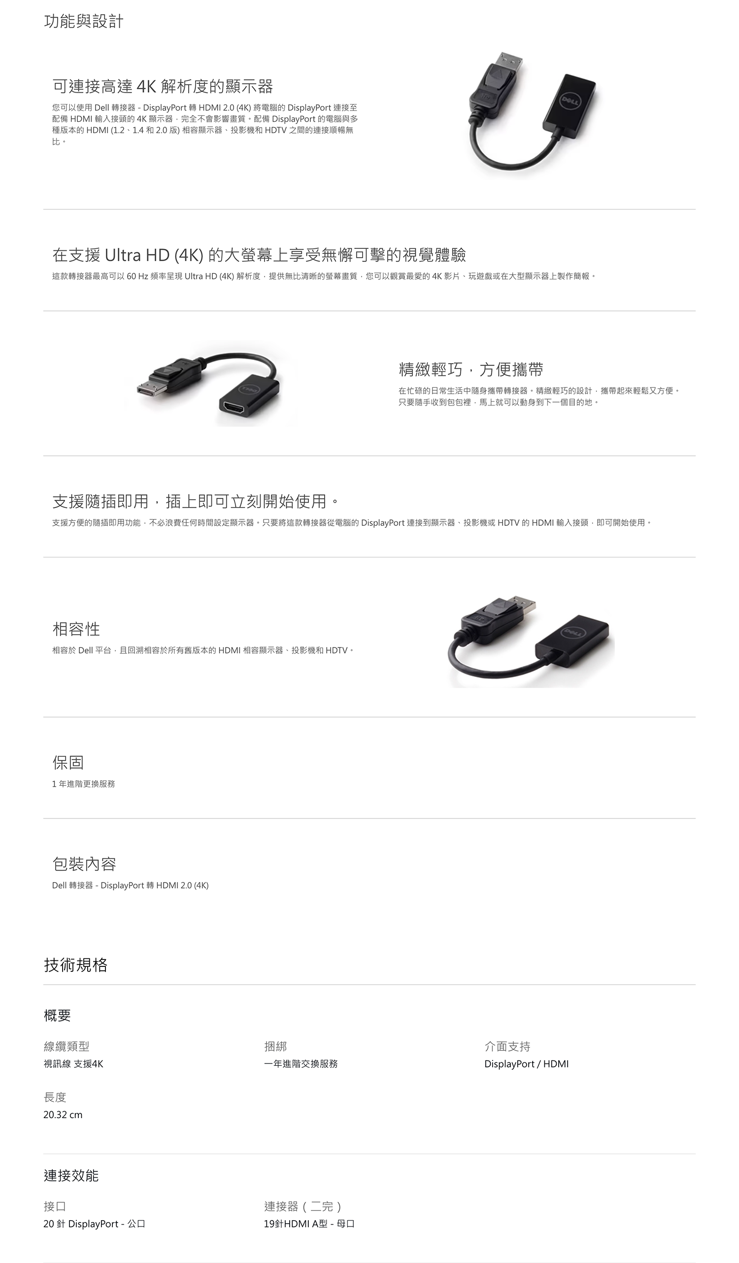 Dell 轉接器 - DisplayPort 轉 HDMI 2.0 (4K)