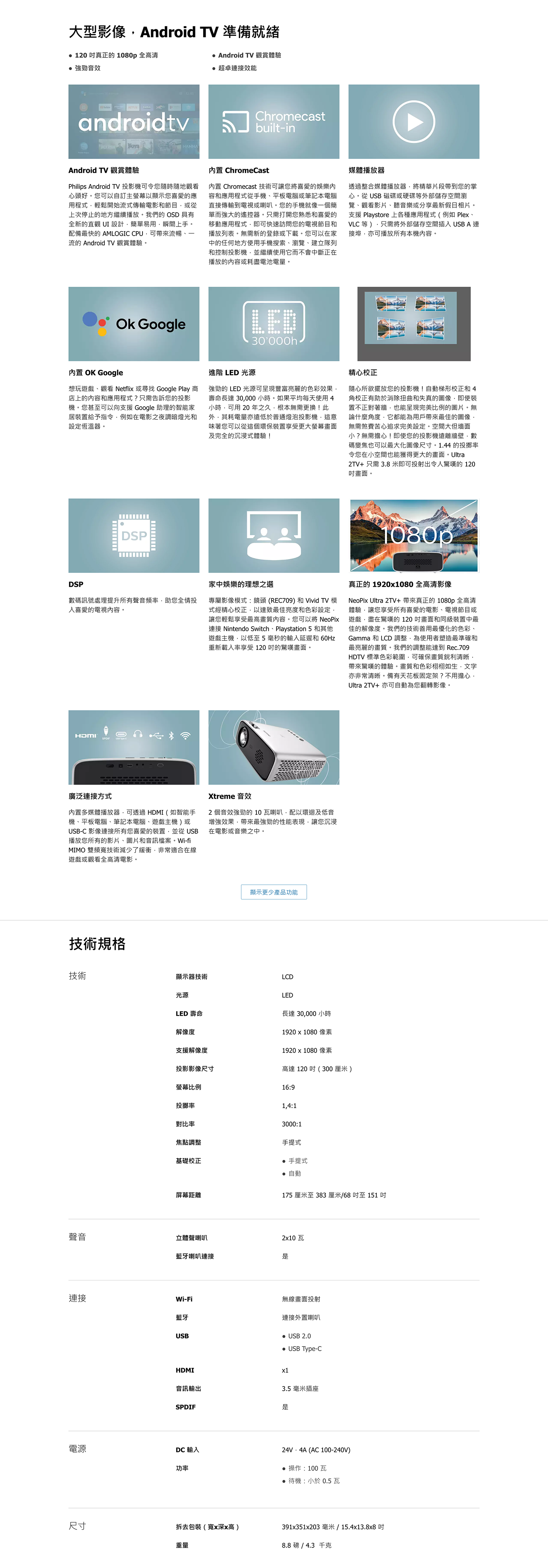 Ultra 2TV+ 基於 Android TV,以真正的全高清解像度投影影像。憑藉多重影像校正、無與倫比的喇叭、低風扇噪音及 REC709 色彩空間,您可以透過 120 吋的大型畫面盡情享受最佳娛樂體驗。