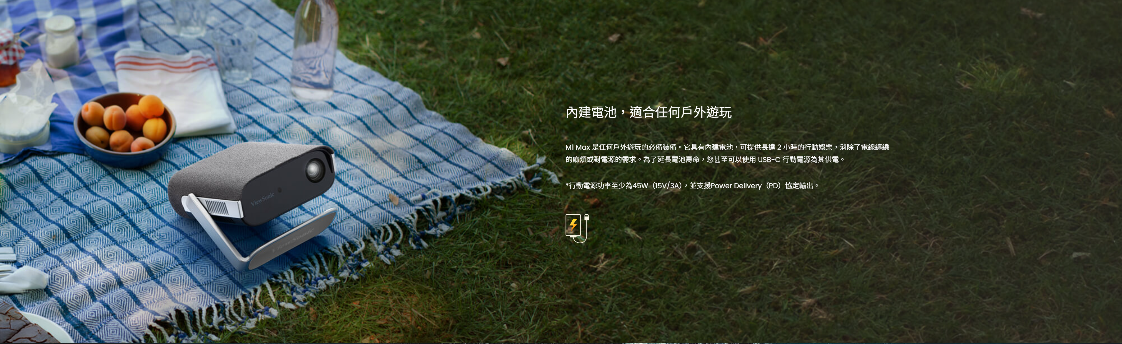 內建電池並支援行動電源,隨處投影不受限