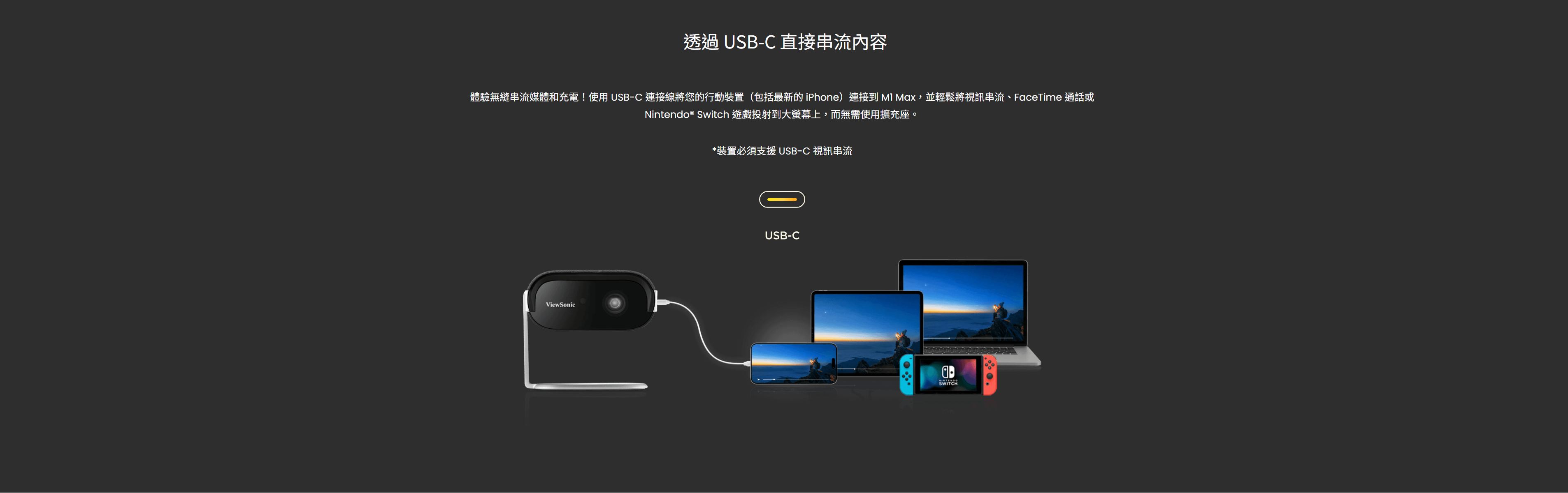 Wi-Fi 螢幕鏡像、USB-C 串流與藍牙連接